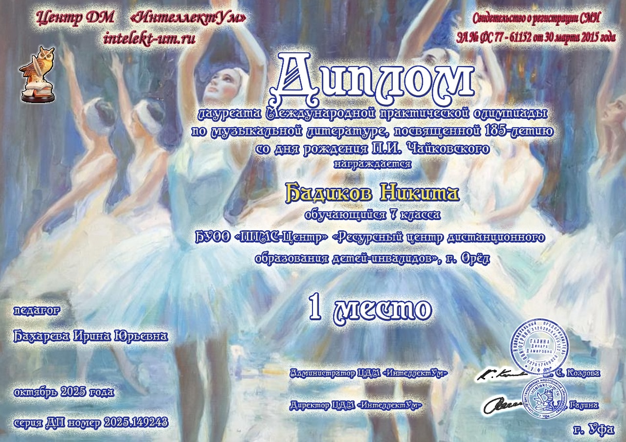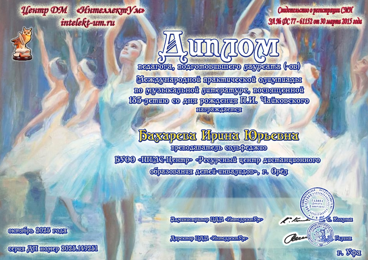 Поздравляем победителей Международной практической олимпиады по музыкальной литературе, посвященной 185-летию со дня рождения П.И.Чайковского!