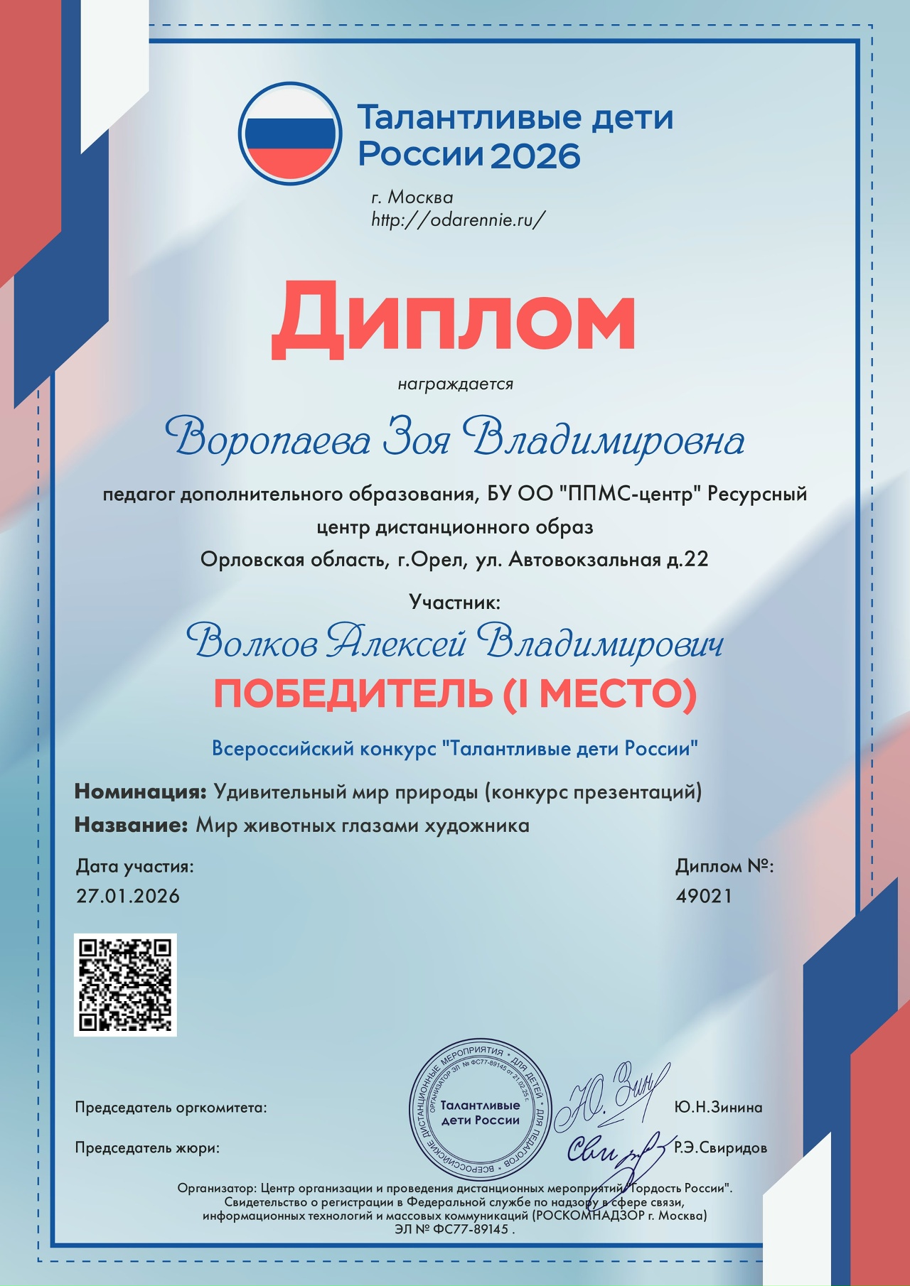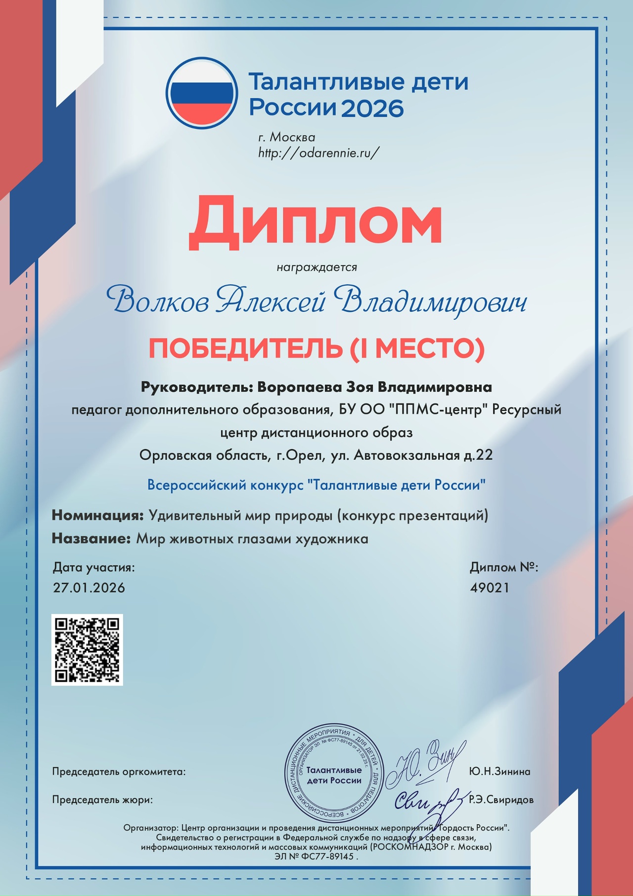Поздравляем победителей Всероссийского конкурса «Талантливые дети России» в номинации «Удивительный мир природы»!