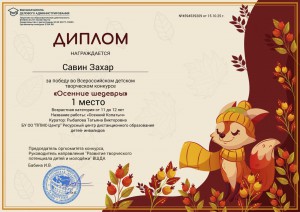 Подведены итоги Всероссийского детского творческого конкурса «Осенние шедевры», проводимого Высшей школой делового администрирования. Поздравляем победителей!
