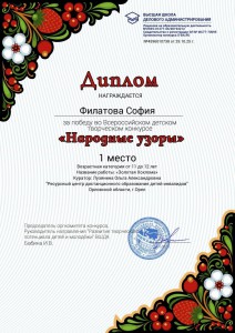 Поздравляем победителей Всероссийского детского творческого конкурса «Народные узоры»!