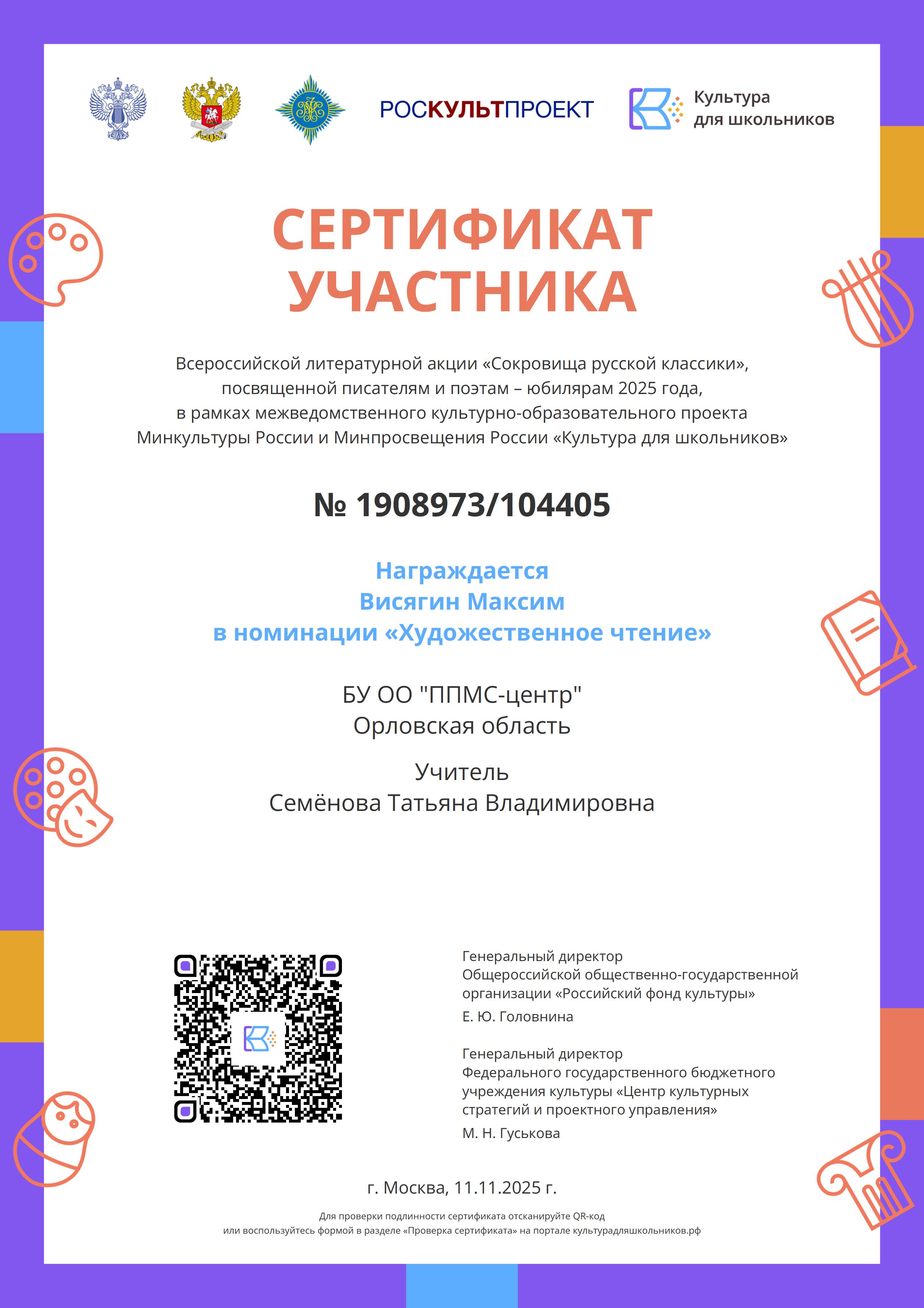 Подведены итоги Всероссийской литературной акции «Сокровища русской классики». Поздравляем участников! Выражаем благодарность педагогу дополнительного образования Семеновой ТВ. за подготовку обучающихся Ресурсного центра!
