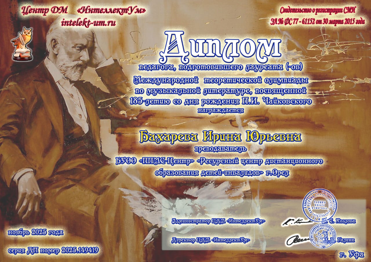 Поздравляем победителей Международной теоретической олимпиады по музыкальной литературе, посвященной 185-летию со дня рождения П.И.Чайковского!